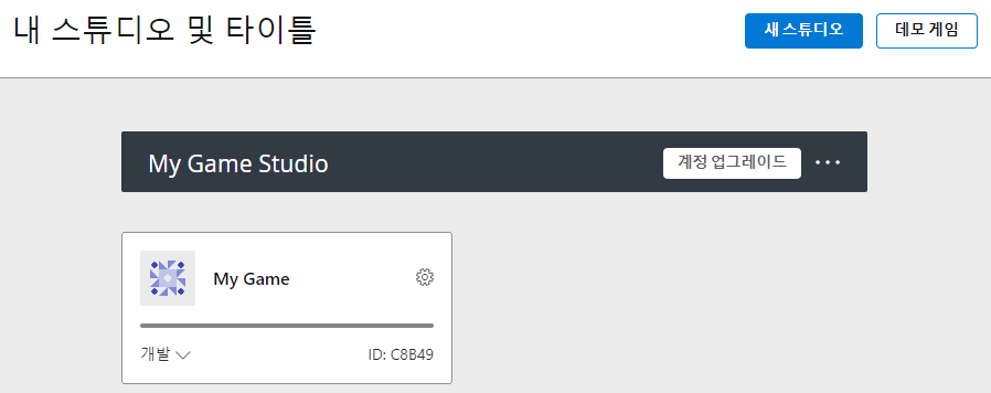 여기서 My Game Studio로 되어 있는 이유는 내 스튜디오 이름이 My Game Studio 기 때문이다.