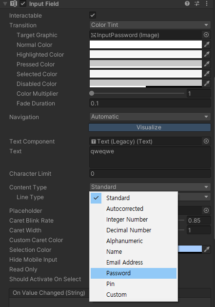 그래서 인풋 필드에 Content Type를 PassWord로 바꿔준다.