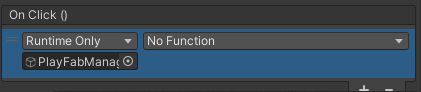 버튼에 OnClick이벤트를 추가하고 처음 만들어둔 PlayFabManager스크립트를 넣은 GameObject를 넣어준다.